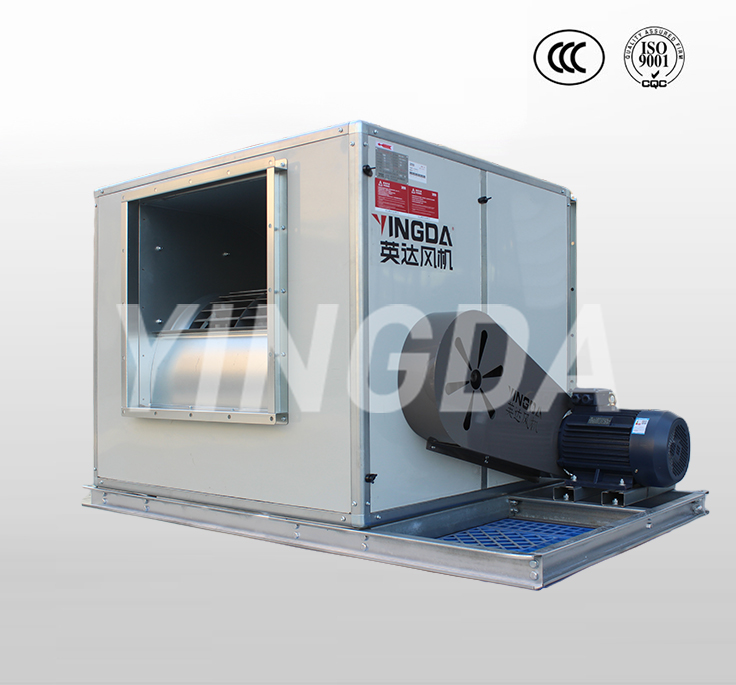 1.1.HTFC型柜式離心風機是一種高效率、低噪聲箱式離心風機。產品由低噪聲前傾多翼離心風機、電機、軸承、傳動件、消聲型箱體等組成。根據安裝位置的不同,提供12種不同的角度的進出風口位置,以滿足用戶不同的安裝需要。根據消防與通風的不同要求分A式和B式兩種類型,A式電機裝在箱體外,用于消防排煙,并經國家消防裝備監督質量檢驗中心按GA211-2009《消防排煙風機耐高溫試驗方法》進行耐高溫試驗,能在280℃高溫條件下連續運行30分鐘以上;B式電機裝在箱體內,用于通風換氣。