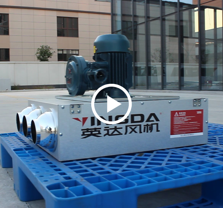 1.1.YDF型誘導風機主要用于無風管條件下,將多臺誘導風機按一定距離和方向依次排列,以少量高速噴流氣體帶動誘導周圍靜止的空氣,達到高效經濟的通風換氣效果。也可單獨布置在通風死角區,通過誘導風機高速噴流達到稀釋廢氣作用。