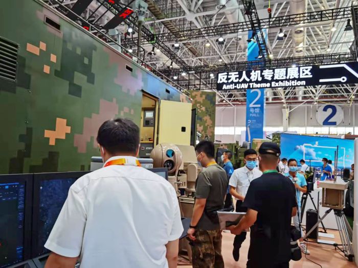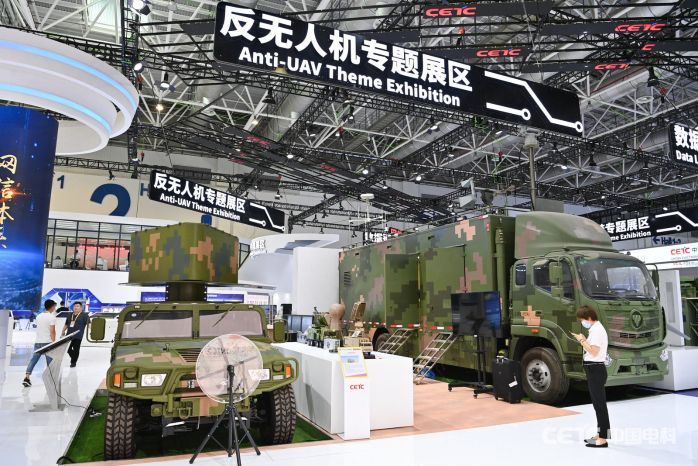 珠海航展,中國電科展區(qū)。具備領(lǐng)先反無人機綜合能力的模塊化、智能化出口型反無人機作戰(zhàn)體系引發(fā)關(guān)注。